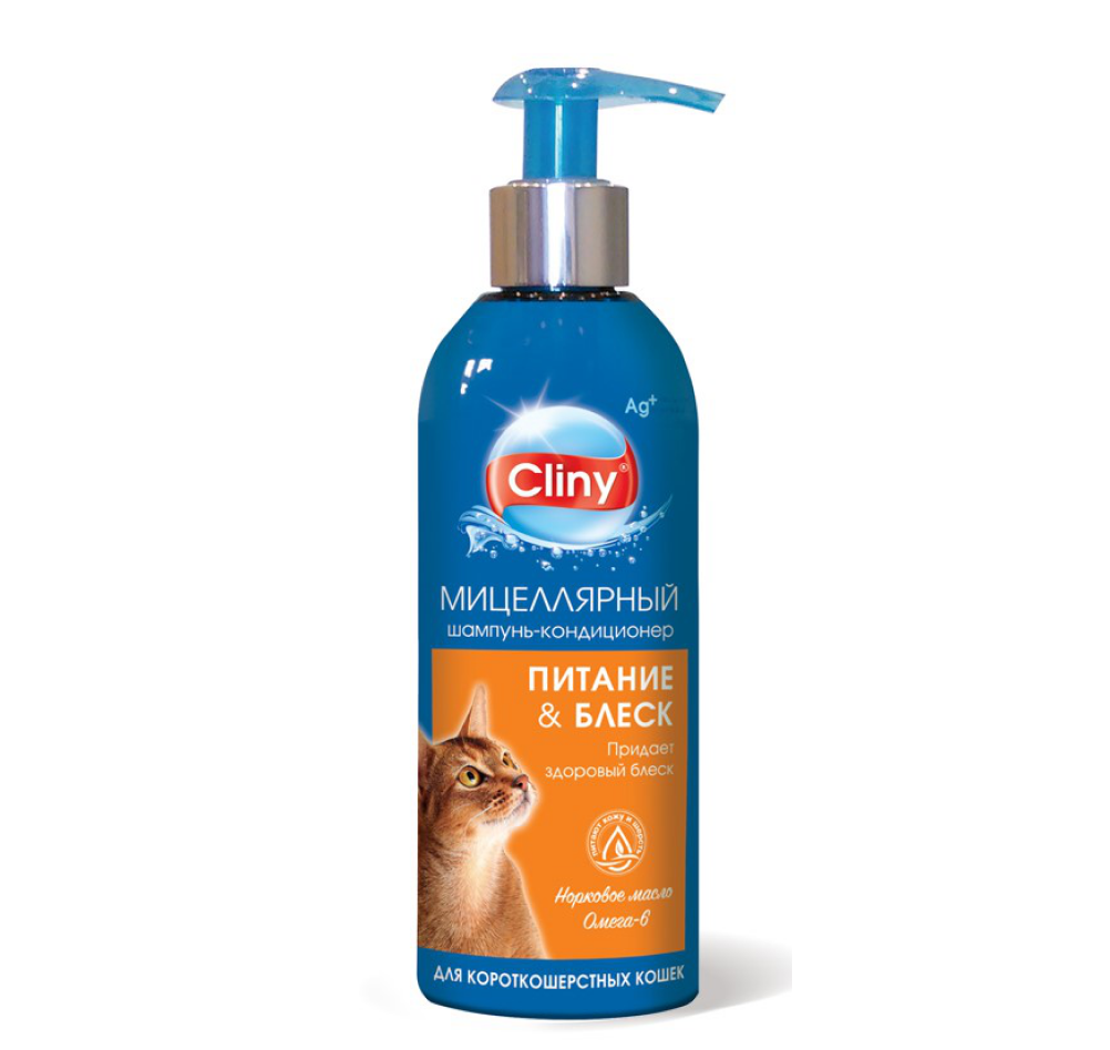 Cliny Шампунь Питание и блеск для короткошерстных кошек 200мл
