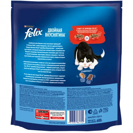 Двойная вкуснятина сухой корм для взрослых кошек с мясом - 600 г