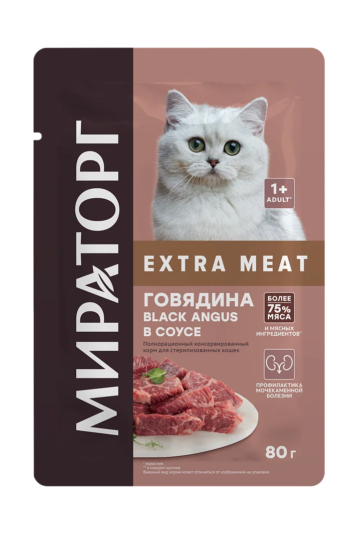 Extra Meat Корм консервир. с говядиной в соусе для стерил. кошек " Black Angus" 80гр