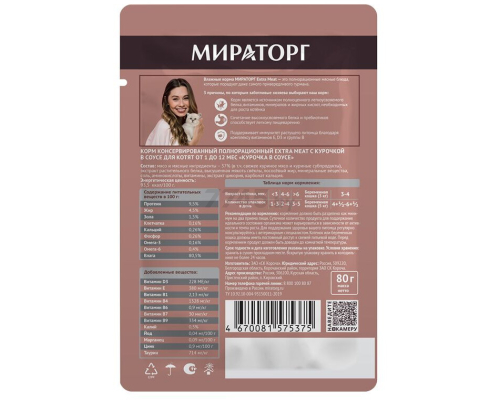 Extra Meat Корм консервированный для котят Курочка в соусе, 80 г