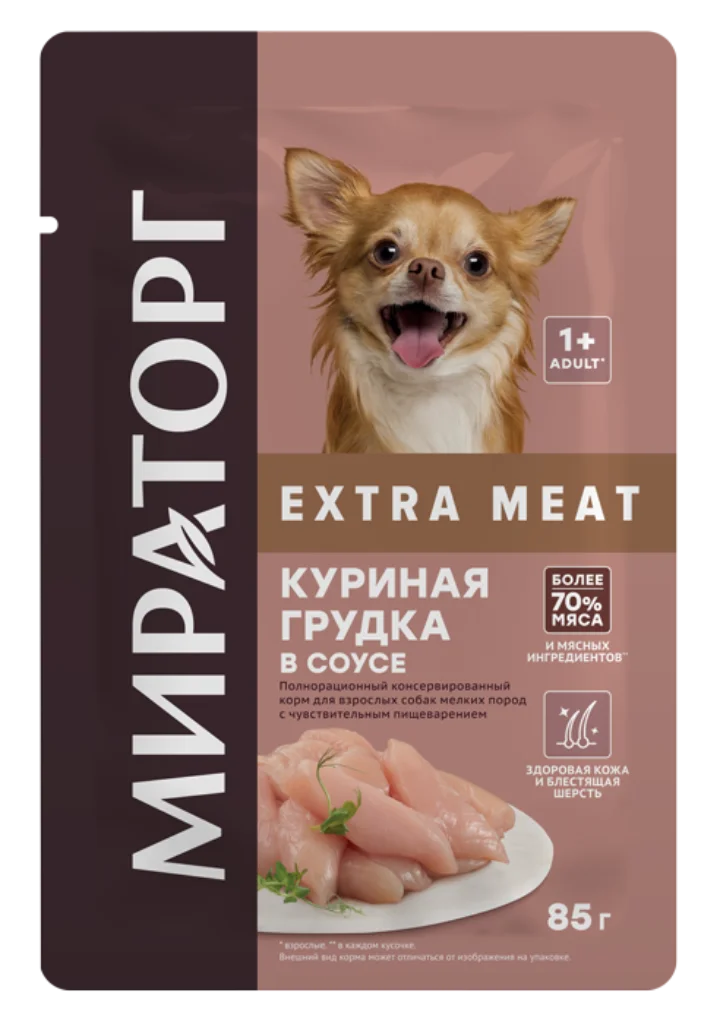 Extra Meat Корм консервированный для собак мелких пород с куриной грудкой пакет, 85 гр