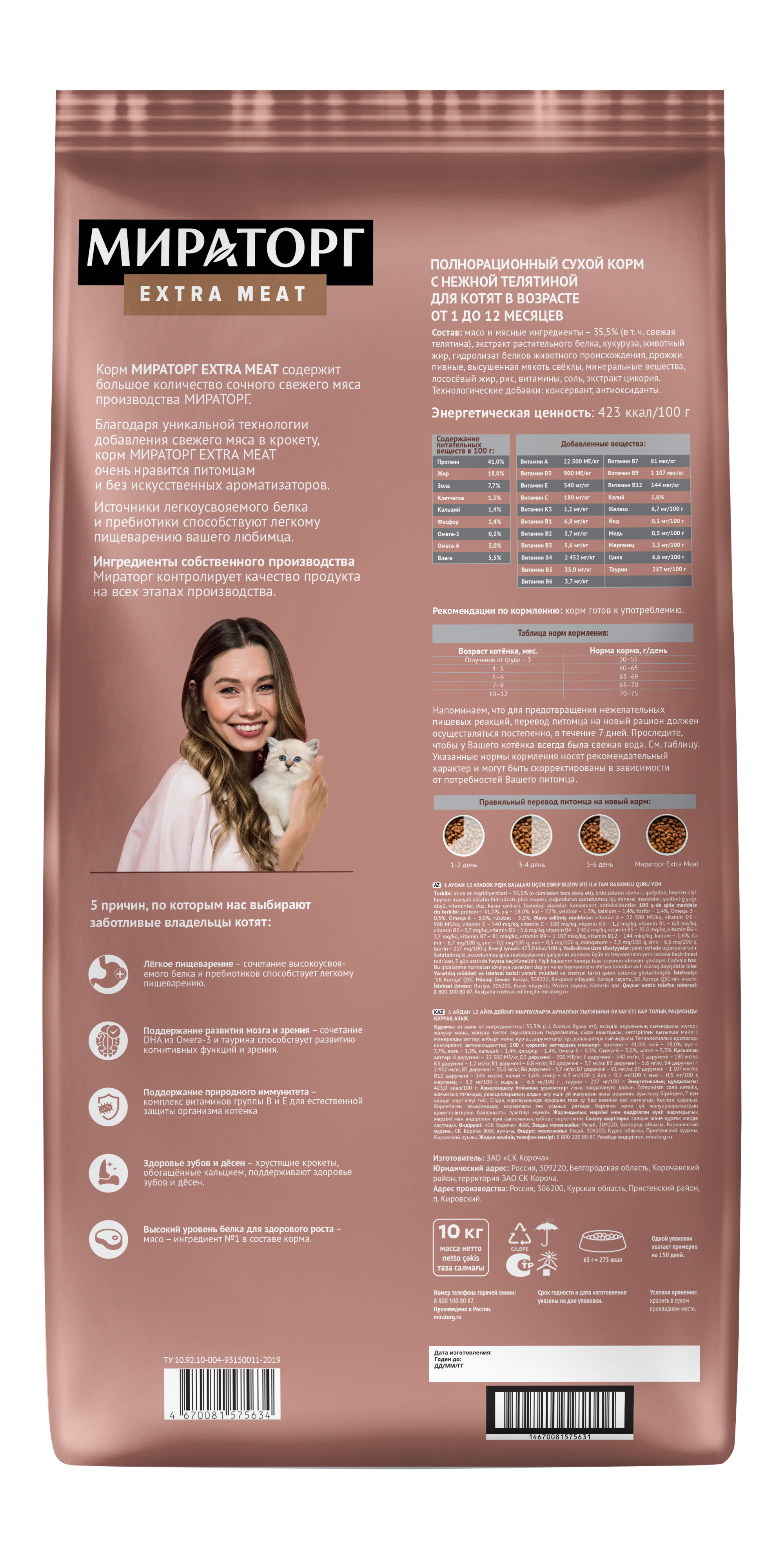 Extra Meat сухой корм с нежной телятиной для котят в возрасте от 1 до 12 месяцев