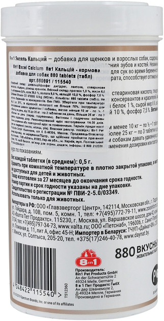 Кальциевая добавка для щенков и взрослых собак 8 in 1 Excel Calcium (1 таблетка)