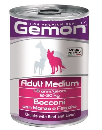 Консервы для собак средних пород Gemon Dog, кусочки говядина/печень 415 г