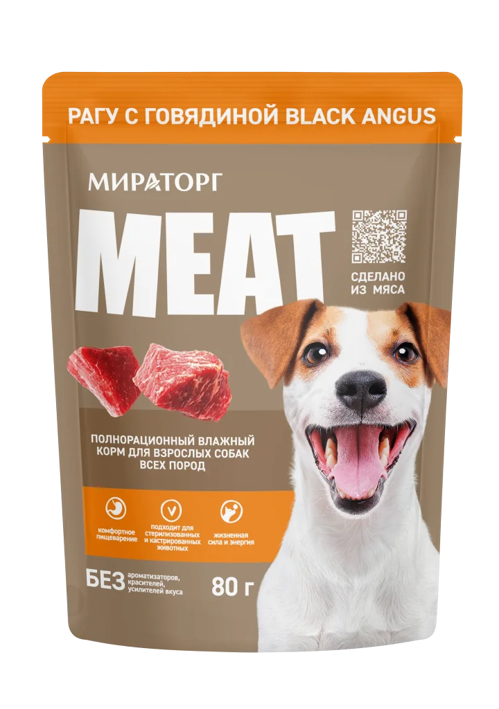 Корм консервированный полнорационный MEAT для взрослых собак всех пород "Рагу с говядиной Black Angus"