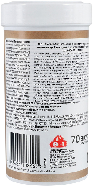 Мультивитаминный комплекс 8in1 Excel Multi Vit-Adult для взрослых собак таблетки (1 таблетка)