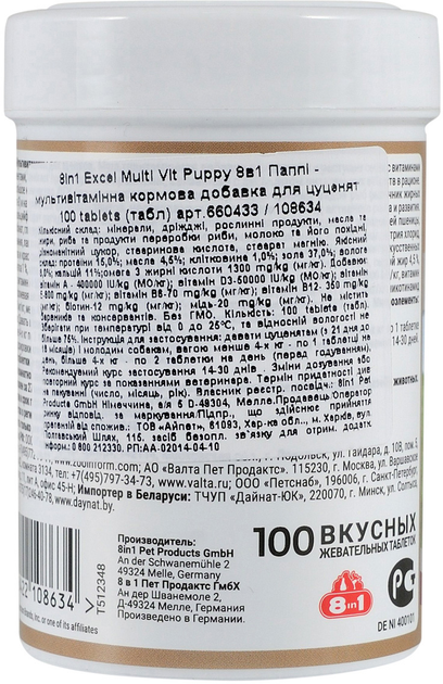 Мультивитаминный комплекс 8in1 Excel Multi Vit-Puppy для щенков (1 таблетка)