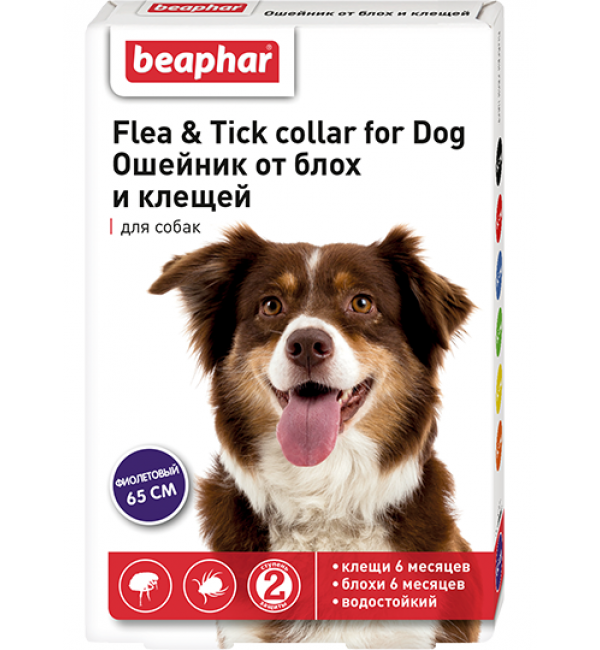 Ошейник от блох и клещей для собак , фиолетовый, 65 см