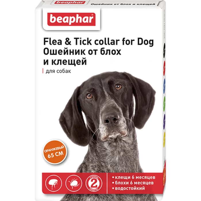 Sku:Ошейник Flea & Tick collar for Dog от блох и клещей для собак (оранжевый) • Для собак и щенков с 6-месячного возраста • Против клещей, блох, вшей, власоедов • Защищает от паразитов 6 месяцев • Водостойкий