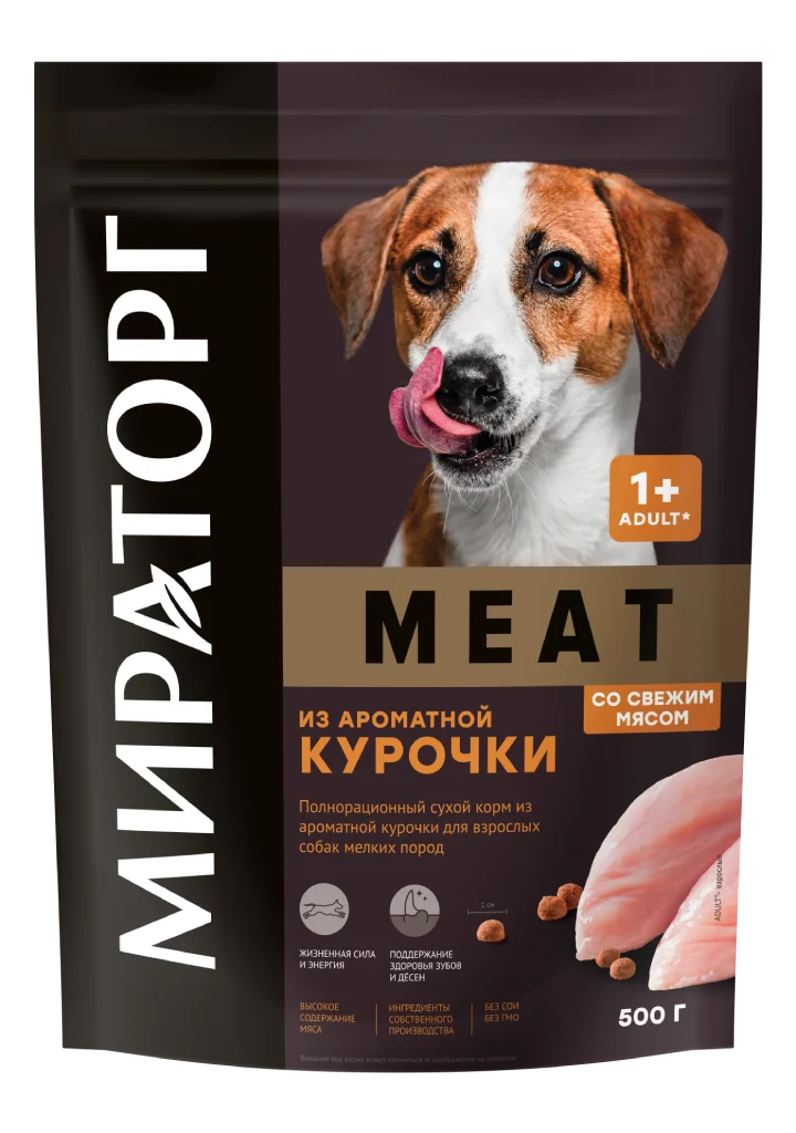 Полнорационный сухой корм MEAT из ароматной курочки для взрослых собак мелких пород