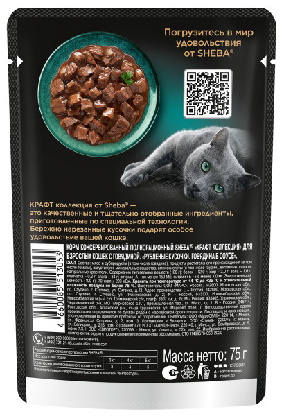 Влажный корм для кошек Sheba Craft Collection «Рубленые кусочки. Говядина в соусе» 75 г