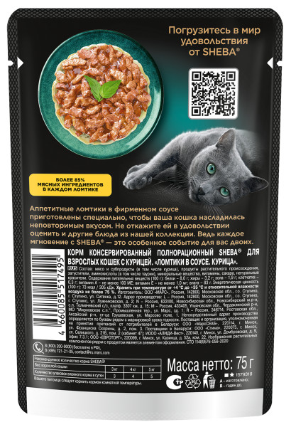 Влажный корм для кошек Sheba Ломтики в соусе с курицей 75 г