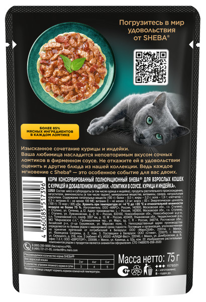 Влажный корм для кошек Sheba Ломтики в соусе с курицей и индейкой 75 г