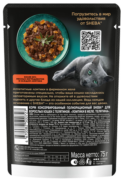 Влажный корм для кошек Sheba Ломтики в желе с телятиной 75 г