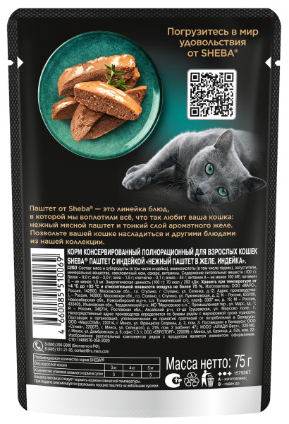 Влажный корм для кошек Sheba Нежный паштет в желе с индейкой 75 г