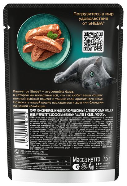Влажный корм для кошек Sheba Нежный паштет в желе с лососем 75 г