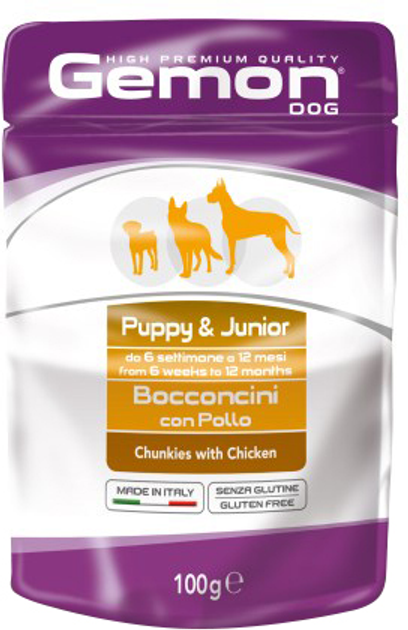 Влажный корм для собак Gemon Pouch Dog Puppy & Junior chicken со вкусом курицы 100 г