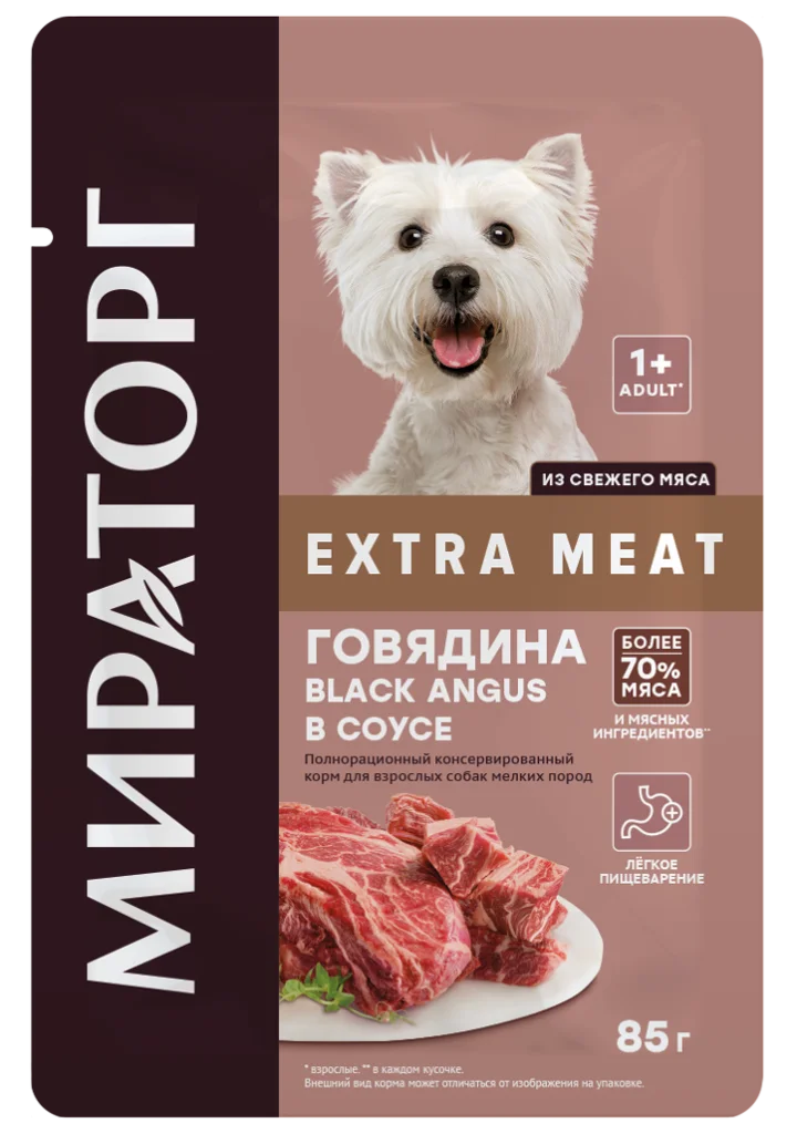 Влажный корм для собак мелких пород Мираторг Winner Extra Meat Говядина BLACK ANGUS в соусе 85 г