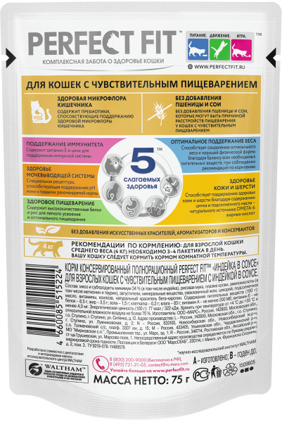 Влажный корм для взрослых кошек с чувствительным пищеварением c индейкой в соусе 75 г