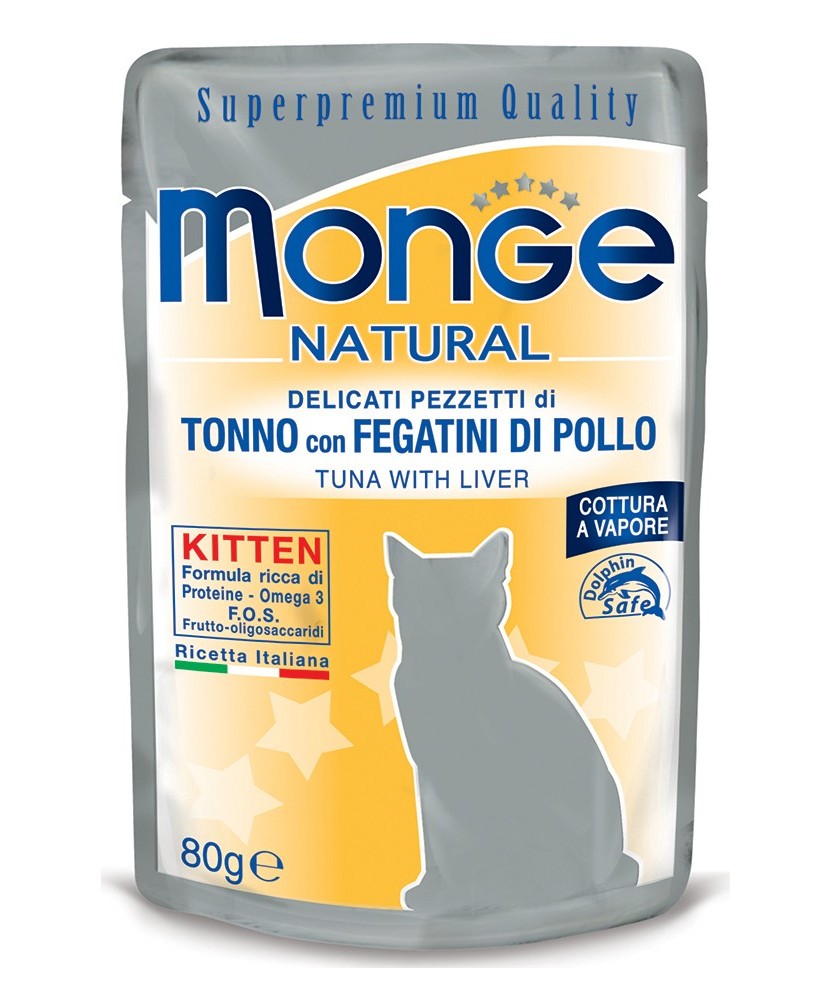 Влажный корм натуральный для котят с тунцом и куриной печенью 80гр